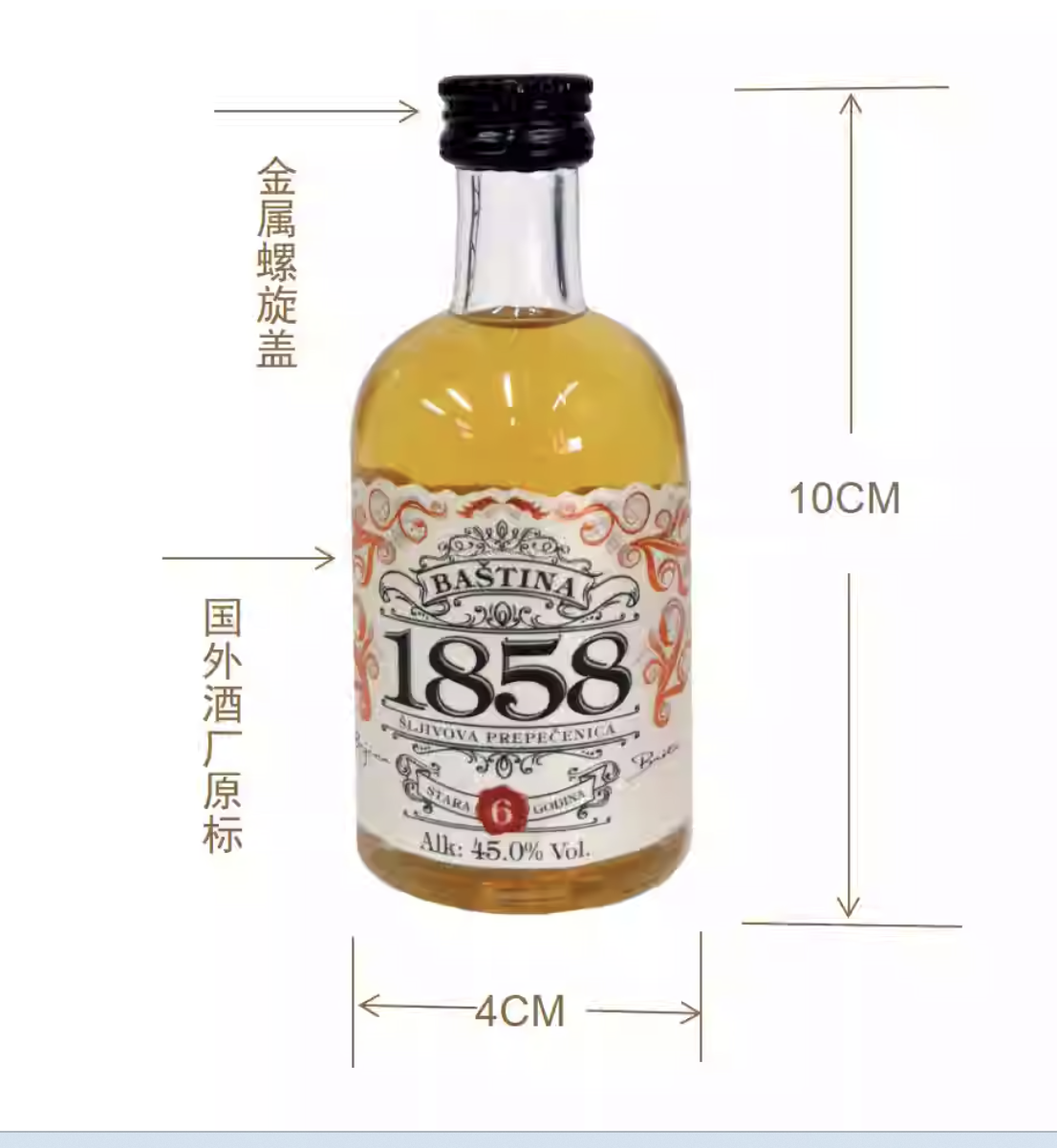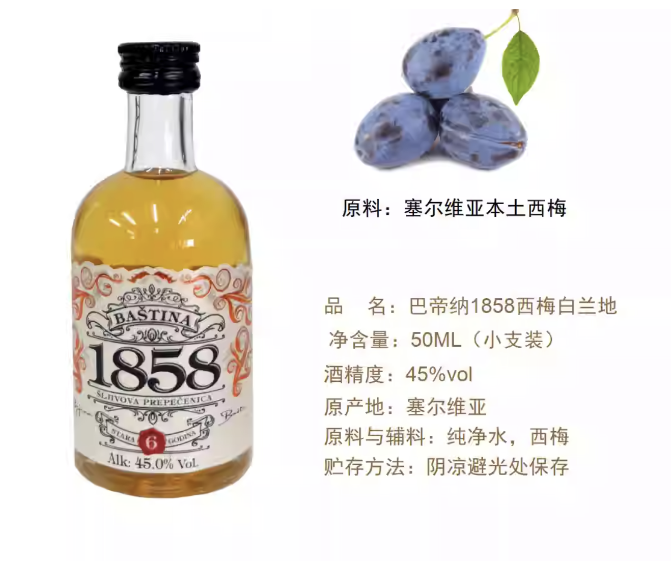 “Baština 1858”(Baština音巴帝纳,意思传承)是一款超品质、芳香馥郁、风味让人难忘的西梅白兰地。无焦糖、无任何添加剂,酒体清醇,花香浓郁,味道独特。